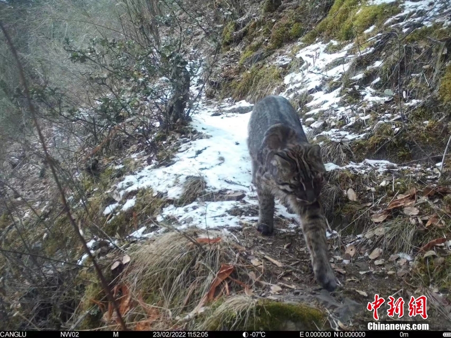 5月17日,記者從西藏自治區(qū)那曲市林業(yè)和草原局獲悉,在該局和山水自然保護中心聯(lián)合開展的那曲生物多樣性調(diào)查項目中,首次在那曲市嘉黎縣記錄到了國家一級保護動物金貓的活動影像,填補了那曲市的金貓分布空白,并且4300米也是迄今為止金貓在全球的最高分布海拔記錄。圖為2022年2月紅外相機拍攝到的金貓影像。 中新社發(fā) 山水自然保護中心 供圖