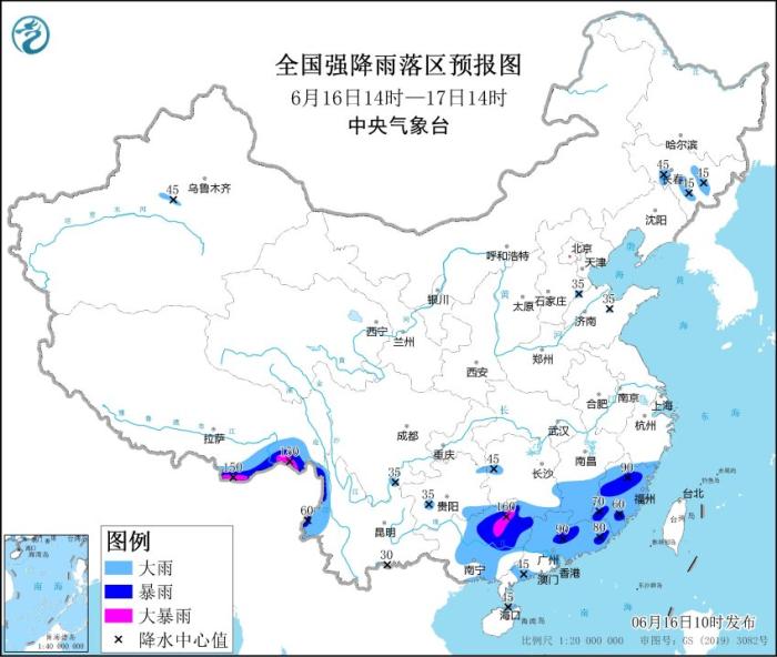 中新網(wǎng)6月16日電 據(jù)中央氣象臺網(wǎng)站消息,中央氣象臺6月16日10時繼續(xù)發(fā)布暴雨藍(lán)色預(yù)警:預(yù)計,6月16日14時至17日14時,福建、江西南部、湖南南部、廣東大部、廣西中東部以及云南西北部、西藏東南部等地的部分地區(qū)有大到暴雨,局地大暴雨(100~160毫米)。上述部分地區(qū)伴有短時強降水(最大小時降雨量20~50毫米,局地可超過60毫米),局地有雷暴大風(fēng)等強對流天氣。