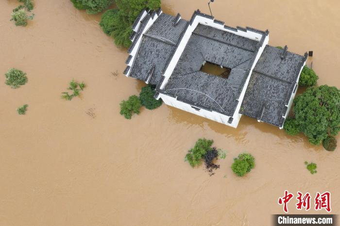 圖為6月20日,航拍江西省婺源縣沿江受淹的房屋。 詹東華 攝