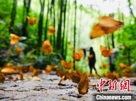 圖為金平縣的中國·紅河蝴蝶谷內(nèi)箭環(huán)蝶幼蟲在短時(shí)間大量集中羽化成蝶?!⑷疥?攝