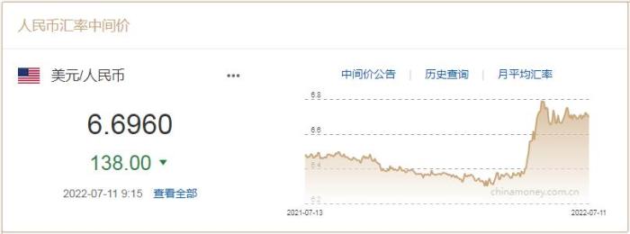 7月11日人民幣對美元匯率中間價調(diào)升138個基點(diǎn)