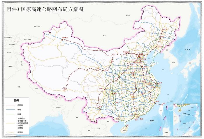 國家高速公路網由7條首都放射線、11條北南縱線、18條東西橫線,以及6條地區(qū)環(huán)線、12條都市圈環(huán)線、30條城市繞城環(huán)線、31條并行線、163條聯絡線組成。其中,首都放射線包括:北京—哈爾濱、北京—上海、北京—臺北、北京—港澳、北京—昆明、北京—拉薩、北京—烏魯木齊。(中新財經)