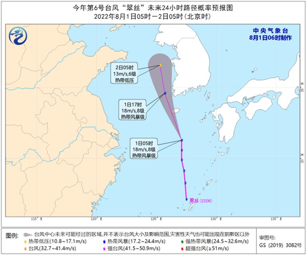 此外,今年第6號(hào)臺(tái)風(fēng)“翠絲”已于昨天下午生成,其中心今天早晨05時(shí)位于韓國濟(jì)州島南偏東方向約250公里的東海北部海面上,預(yù)計(jì)將以每小時(shí)30-35公里的速度向北偏西方向移動(dòng),強(qiáng)度逐漸減弱并消散。