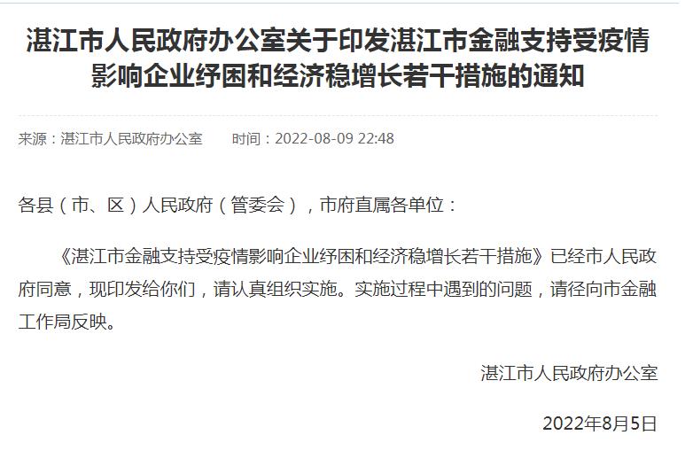 中新網(wǎng)8月10日電 廣東省湛江市人民政府網(wǎng)站9日發(fā)布《關(guān)于印發(fā)湛江市金融支持受疫情影響企業(yè)紓困和經(jīng)濟(jì)穩(wěn)增長若干措施的通知》,提及促進(jìn)房地產(chǎn)市場平穩(wěn)健康發(fā)展金融服務(wù)等方面的措施。
