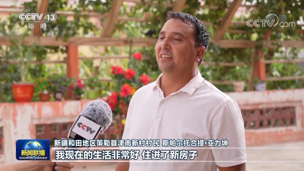 新疆和田地區(qū)策勒縣津南新村村民 斯帕爾托合提·亞力坤:我現(xiàn)在的生活非常好,住進(jìn)了新房子,家里通水通電也有網(wǎng)絡(luò),家里種了兩座大棚,我還當(dāng)貨車司機(jī)配送貨物,我們家一年的收入10多萬元,我覺得生活很幸福,感恩黨、感恩總書記。