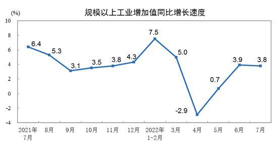 國家統(tǒng)計(jì)局:7月份規(guī)模以上工業(yè)增加值增長3.8%