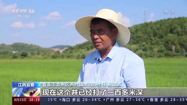 宜春市袁州區(qū)西村鎮(zhèn)水利辦主任 易建勇:現(xiàn)在這個(gè)井已經(jīng)打了一百多米深,每小時(shí)的出水量在10立方米到20立方米之間,可以滿足這300多畝田的灌溉。