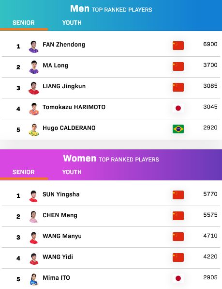 國際乒聯(lián)更新排名:樊振東、孫穎莎單打世界第一