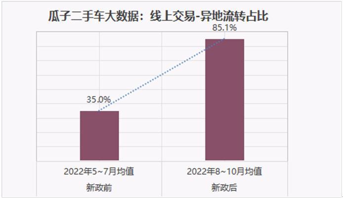 瓜子二手車大數(shù)據(jù)顯示,異地交易占比從8月前3個月的平均35%,攀升至8月起三個月的均值85%以上,提升超1.4倍。