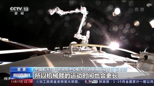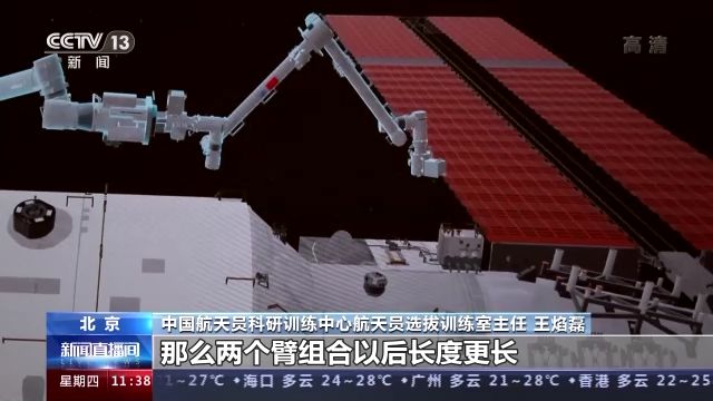 中國航天員科研訓(xùn)練中心航天員選拔訓(xùn)練室主任 王焰磊:我們首次使用兩個機(jī)械臂,就是大臂小臂形成組合臂的狀態(tài)下支持出艙活動任務(wù)。因為大家可以想象一下,單臂的長度已經(jīng)很長了,那么兩個臂組合以后長度更長,它的柔性、剛性等和我們單臂狀態(tài)下是有一些區(qū)別的。在這種情況下載人去支持完成出艙任務(wù),也是我們做首次的一個驗證。