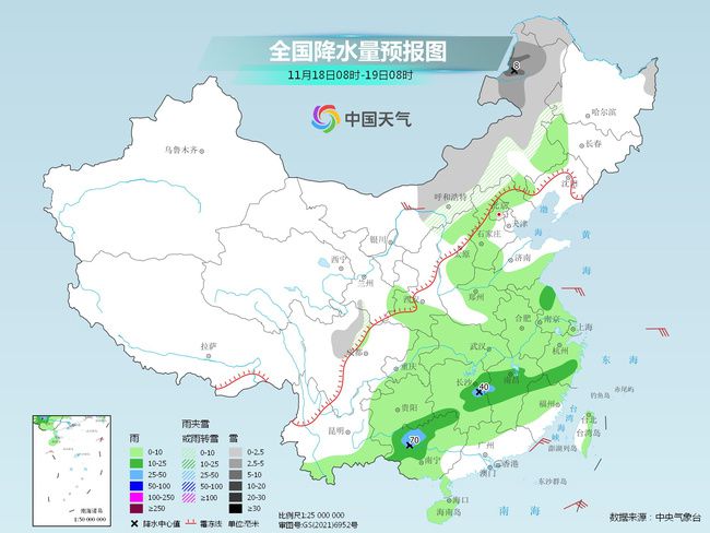 中國天氣網(wǎng)訊 昨天(11月17日)開始,新一股冷空氣自新疆開始自西向東逐漸影響我國其它地區(qū),今明兩天,長江以北地區(qū)將陸續(xù)迎來明顯降溫,華北、東北等地還會(huì)有雨雪天氣現(xiàn)身,局地降水猛烈。而在南方,今明兩天,雨水也將繼續(xù)營業(yè),20日短暫“調(diào)休”一天,21日至22日,新一輪降雨又將上線,幾乎無縫銜接。