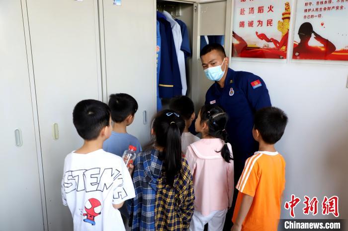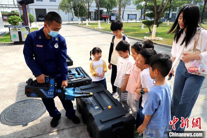 小朋友們親身體驗(yàn)滅火裝備器材?!〔淘鲂?攝