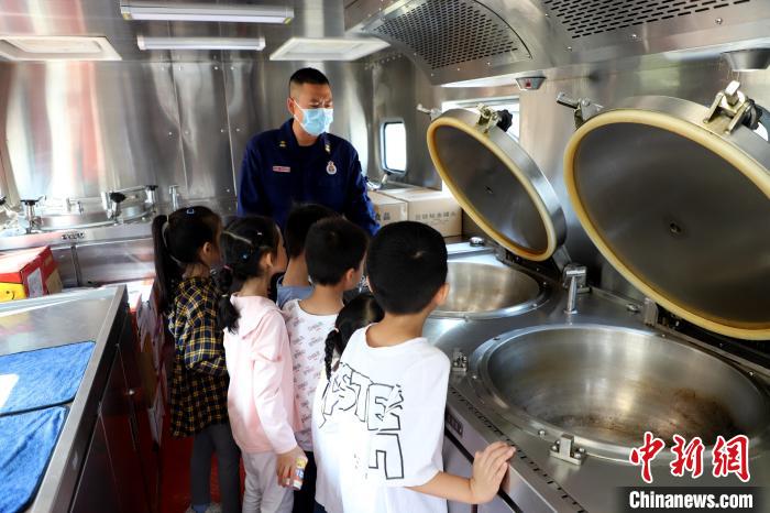 消防員帶領(lǐng)小朋友們參觀炊事車(chē)?!〔淘鲂?攝