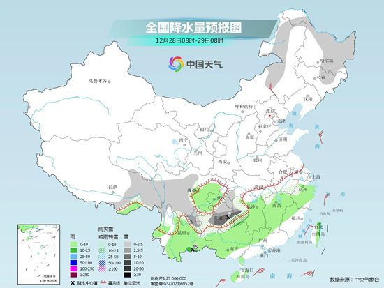 中國天氣網(wǎng)訊 在冷空氣與西南暖濕氣流配合之下,今天(12月28日),南方各地降水繼續(xù)發(fā)展。預(yù)計,湖南、貴州、云南等地局地有中雪或大雪,降溫重心也集中到了長江以南地區(qū),各地濕冷加重,上述地區(qū)公眾需做好防范雨雪和防寒保暖工作。