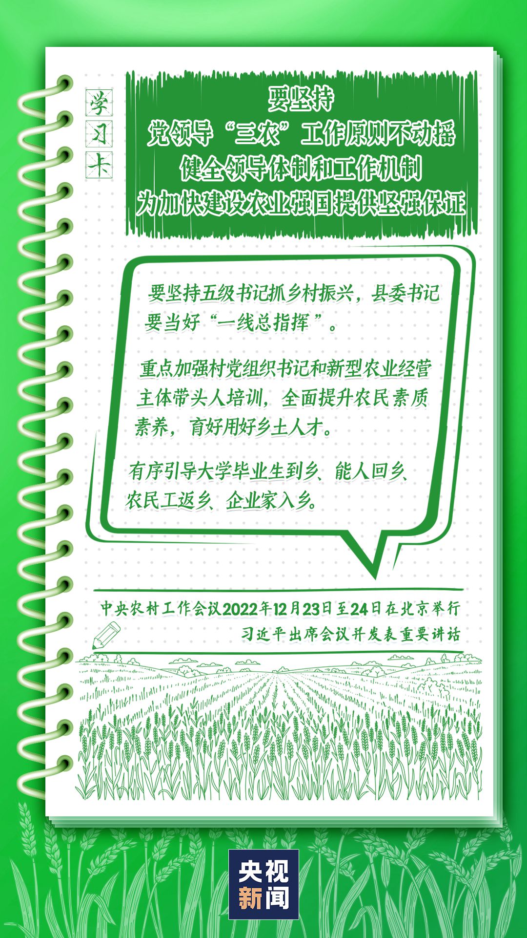 中央農(nóng)村工作會議12月23日至24日在北京舉行。習(xí)近平總書記出席會議并發(fā)表重要講話強(qiáng)調(diào),錨定建設(shè)農(nóng)業(yè)強(qiáng)國目標(biāo),切實(shí)抓好農(nóng)業(yè)農(nóng)村工作。如何建設(shè)農(nóng)業(yè)強(qiáng)國?總書記給出了“路線圖”,一起學(xué)習(xí)↓