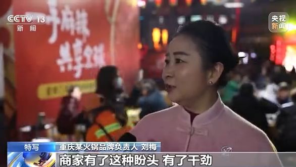 重慶某火鍋品牌負責(zé)人 劉梅:商家有了這種盼頭,有了干勁,再加上有市民觀望,還來吃。今天都排隊,這種感覺好嘛,我們有一句話叫,賺不賺錢,攤子要扯圓。這種感覺就是一種精氣神的感覺。