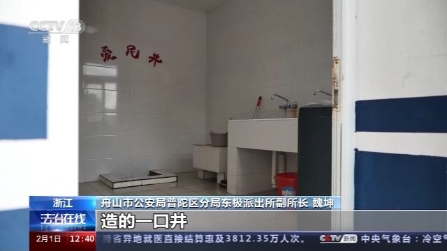 舟山市公安局普陀區(qū)分局東極派出所副所長(zhǎng) 魏坤:這個(gè)是我們建所以來(lái)造的一口井,當(dāng)時(shí)也是便于所里的官兵用水方便,當(dāng)時(shí)我們島上也是缺水,當(dāng)時(shí)的老百姓都到我們這邊來(lái)打水,所以說(shuō)這口井,也是開(kāi)放共享給他們的。