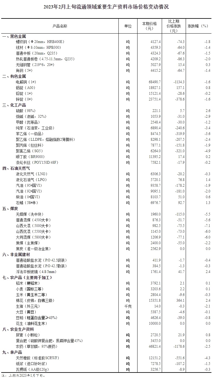 中新網(wǎng)2月14日電 據(jù)國家統(tǒng)計局網(wǎng)站14日消息,據(jù)對全國流通領域9大類50種重要生產(chǎn)資料市場價格的監(jiān)測顯示,2023年2月上旬與1月下旬相比,12種產(chǎn)品價格上漲,35種下降,3種持平。其中,生豬(外三元)價格為14元/千克,較1月下旬相比下降2.1%。(中新財經(jīng))