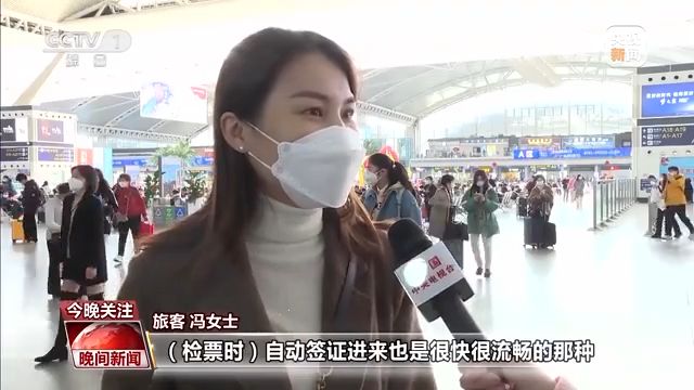 旅客 馮女士:現(xiàn)在方便了很多,檢票時自動簽證進來也是很快很流暢的那種,直接拿身份證刷一下就馬上進來了,以前還要排很長的隊現(xiàn)在不用了,很方便。
