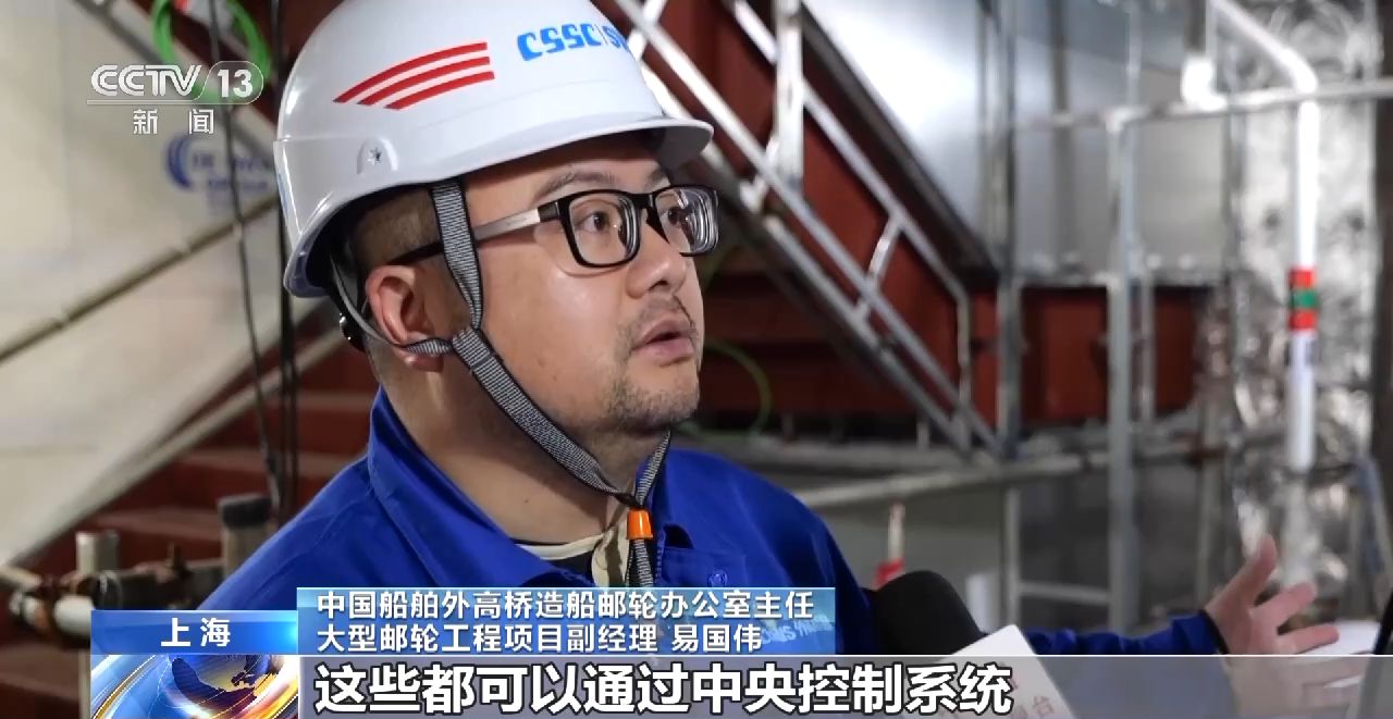 中國船舶外高橋造船郵輪辦公室主任 大型郵輪工程項目副經(jīng)理 易國偉:電纜要提供控制信號,這條船它也是智能化的一條船舶,所有上面用的娛樂設(shè)施、照明設(shè)施,都可以通過中央控制系統(tǒng)來控制。