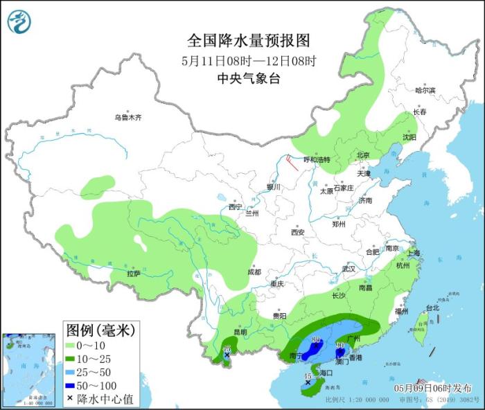 全國降水量預報圖(5月9日08時-10日08時)