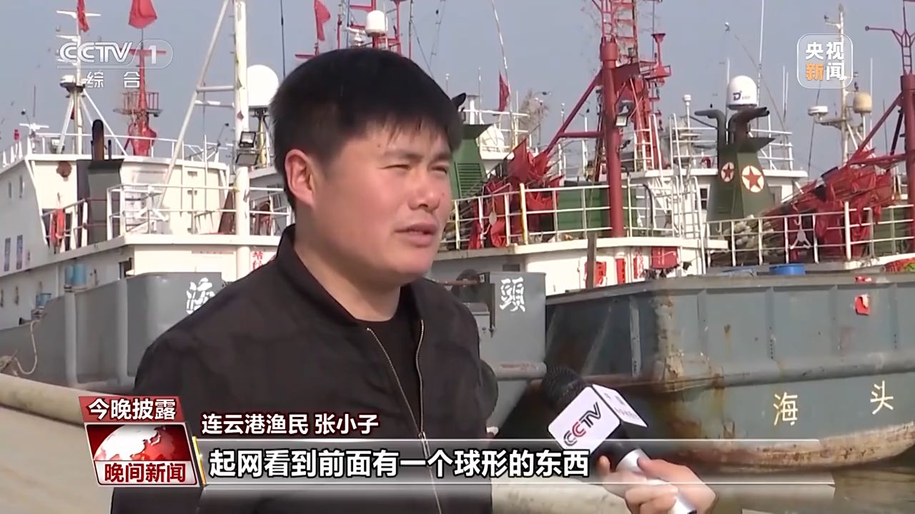 連云港漁民 張小子:起網(wǎng)看到前面有一個(gè)球形的東西,也不知道什么,就撈上來(lái)一看,上面還有外國(guó)字。講座說(shuō)撿到有外國(guó)可疑的裝置,可以上交,我們船上有衛(wèi)星電話,打電話聯(lián)系,國(guó)家還給了獎(jiǎng)勵(lì)。