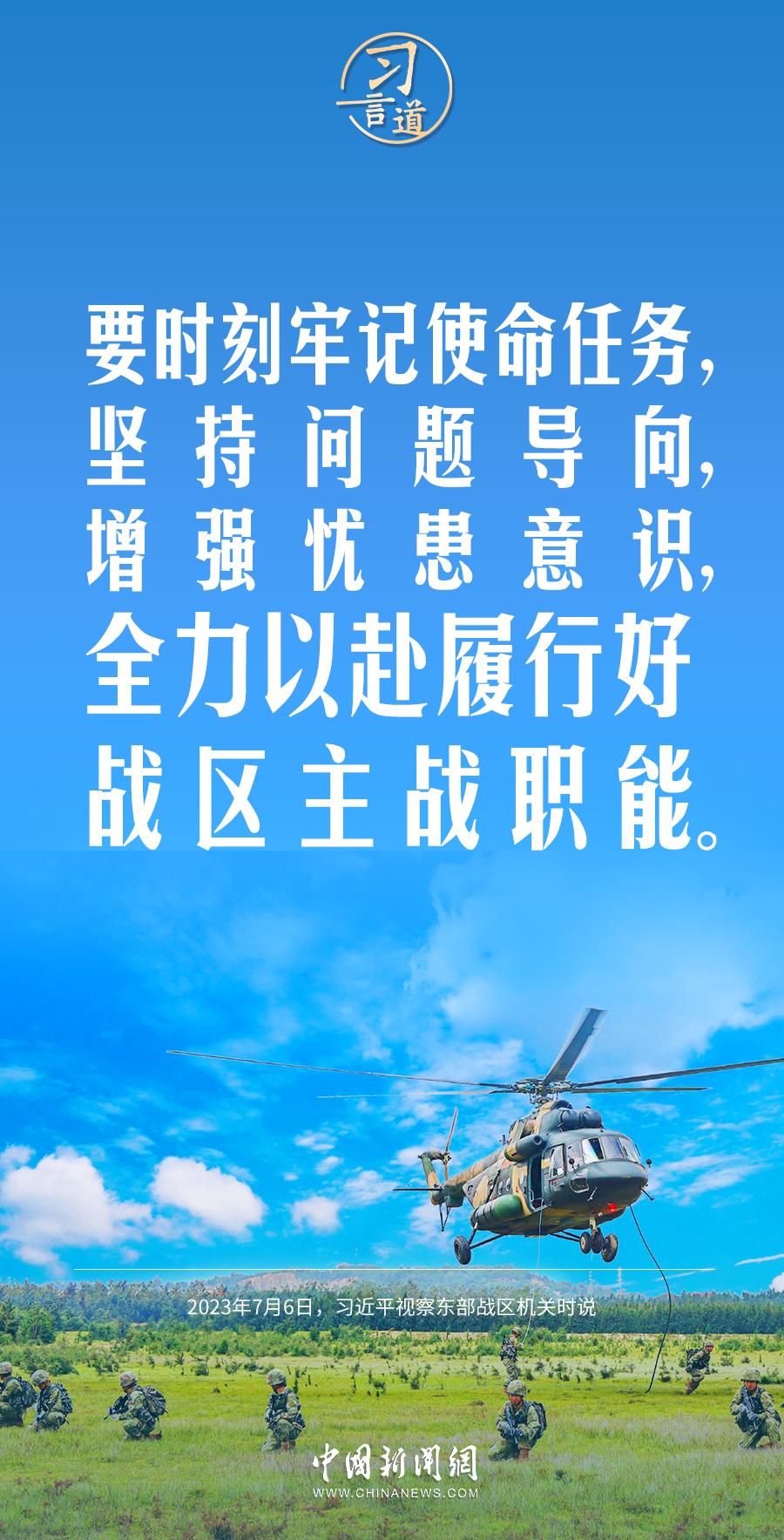 中共中央總書記、國家主席、中央軍委主席習(xí)近平6日視察東部戰(zhàn)區(qū)機關(guān),代表黨中央和中央軍委,向東部戰(zhàn)區(qū)全體官兵致以誠摯問候。習(xí)近平指出——