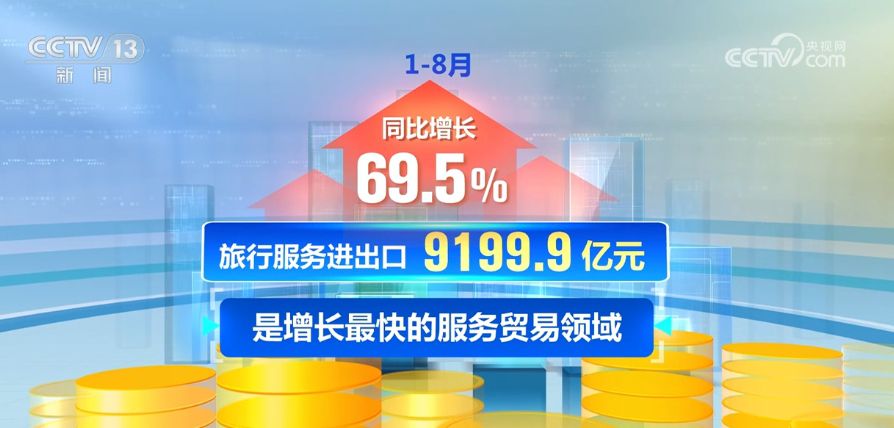 旅行服務持續(xù)恢復。1—8月,旅行服務進出口9199.9億元,同比增長69.5%,是增長最快的服務貿易領域。其中,出口增長54.9%,進口增長70.7%。