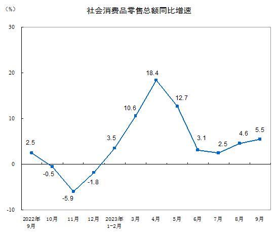 國家統(tǒng)計(jì)局:9月份社會(huì)消費(fèi)品零售總額增長5.5%