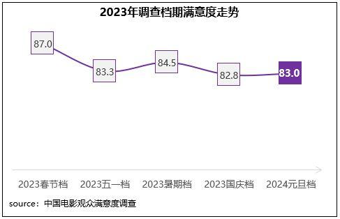 截至12月31日,2023年滿意度項目共對76部影片進行了調(diào)查(其中主調(diào)查70部、輻射調(diào)查6部),至此,中國電影觀眾滿意度項目已完成了第九個年度調(diào)查。這一過程中,我們看到2023年一眾國產(chǎn)精品影片依靠穩(wěn)扎穩(wěn)打的高質(zhì)量創(chuàng)作獲得觀眾高滿意度評價,并以此為支撐表現(xiàn)出強勁的票房號召力,成為市場強勢復(fù)蘇的核心動力。國家電影局統(tǒng)計數(shù)據(jù)顯示,2023年全年票房549.15億元,同比增長82.6%,以高滿意度優(yōu)質(zhì)作品為依托的中國電影市場全面回暖。(來源:中國網(wǎng))
