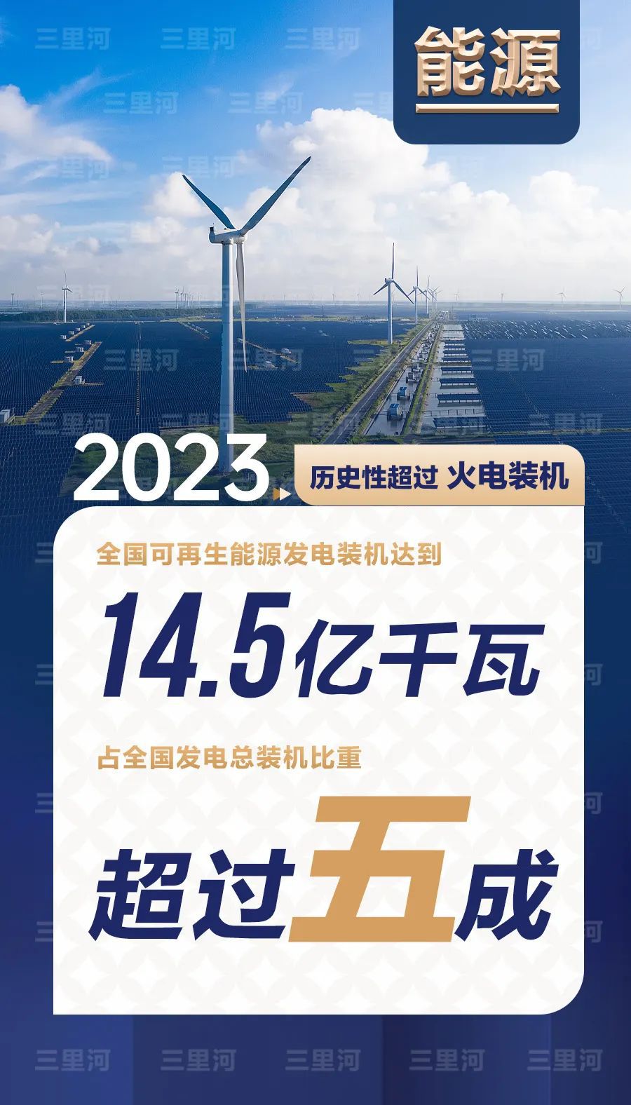 2023年,全國可再生能源發(fā)電裝機(jī)達(dá)到14.5億千瓦,占全國發(fā)電總裝機(jī)比重超過五成,歷史性超過火電裝機(jī)。