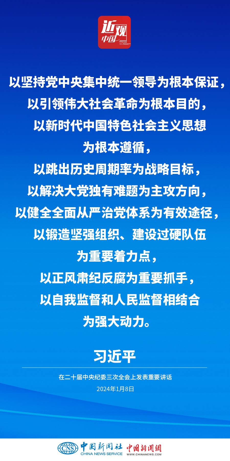 中共中央總書(shū)記、國(guó)家主席、中央軍委主席習(xí)近平8日上午在中國(guó)共產(chǎn)黨第二十屆中央紀(jì)律檢查委員會(huì)第三次全體會(huì)議上發(fā)表重要講話。他強(qiáng)調(diào)——