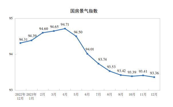 2023年12月份,房地產(chǎn)開(kāi)發(fā)景氣指數(shù)(簡(jiǎn)稱(chēng)“國(guó)房景氣指數(shù)”)為93.36。