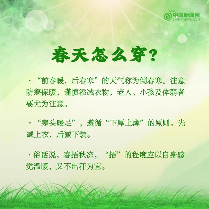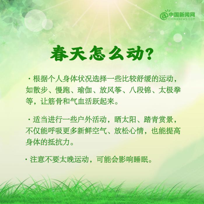 春天是萬物復(fù)蘇的季節(jié),也是調(diào)養(yǎng)身體的好時節(jié)。①每天保證6~8小時的睡眠,避免熬夜;②適當(dāng)進(jìn)行一些戶外活動,曬太陽、踏青賞景等;③不過早減衣,穿衣注意下厚上??;④注意清淡飲食,多吃蔬菜,多喝水……春季養(yǎng)生要注意什么?詳戳↓↓