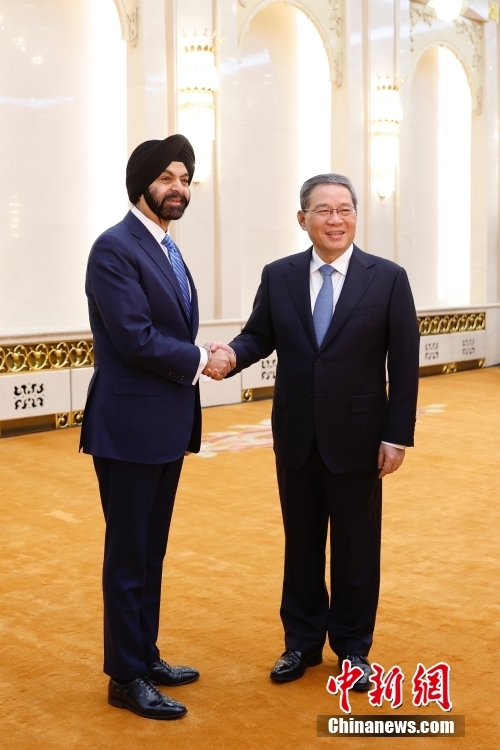 3月25日上午,中國(guó)國(guó)務(wù)院總理李強(qiáng)在北京人民大會(huì)堂會(huì)見世界銀行行長(zhǎng)彭安杰。