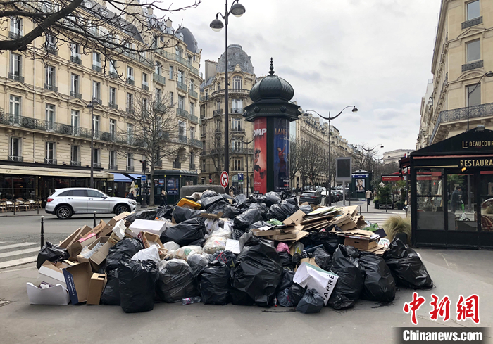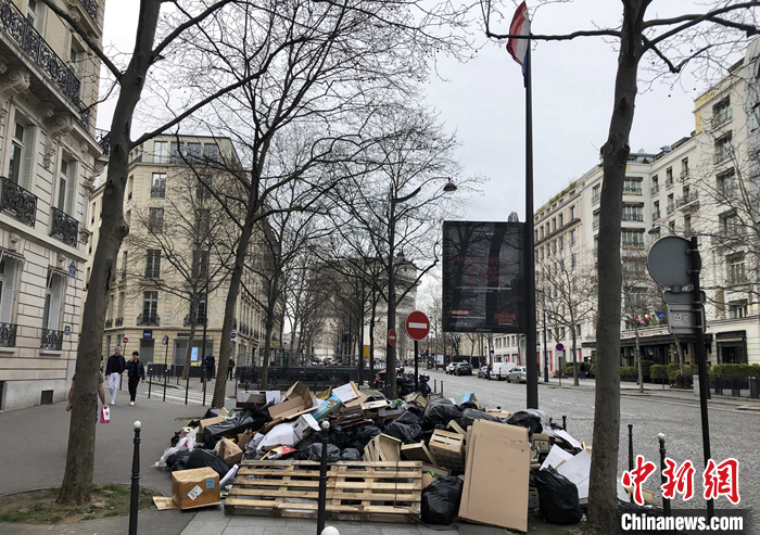 圖為巴黎市中心無(wú)人清理的垃圾。 中新社記者 李洋 攝
