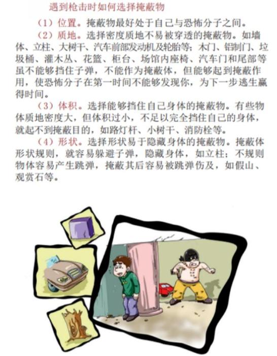 遇到槍擊時(shí)如何選擇掩蔽物 圖片來源:中國駐美國大使館微信公眾號
