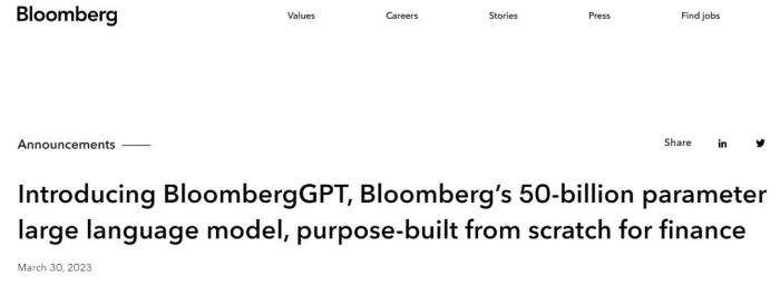 彭博針對(duì)金融業(yè)推出大型語(yǔ)言模型BloombergGPT