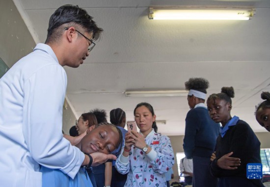 新華社溫得和克4月3日電(記者陳誠 余音潼)第15批中國援納米比亞醫(yī)療隊(duì)隊(duì)員3日在位于納首都溫得和克的伊曼紐爾·謝菲迪中學(xué)為50多名學(xué)生帶來一堂別開生面的中文課。他們用針灸、火罐作教具,以傳統(tǒng)中醫(yī)文化為內(nèi)容,讓同學(xué)們在寓教于樂的沉浸式體驗(yàn)中學(xué)習(xí)中文。