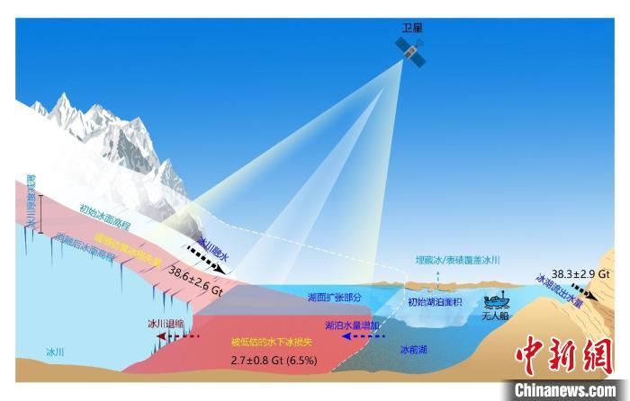 論文第一作者和共同通訊作者張國(guó)慶研究員介紹說,數(shù)字高程模型(DEM)廣泛用于估算全球冰川質(zhì)量損失,但該方法只能觀測(cè)到冰川表面和水面,不能揭示發(fā)生在冰前湖泊水面以下的冰川質(zhì)量損失。