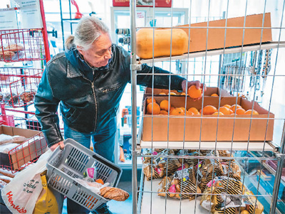 瑞典中央統(tǒng)計局近日公布的數(shù)據(jù)顯示,2022年2月至2023年2月間,瑞典通貨膨脹水平攀升,食品價格漲幅創(chuàng)72年來最高紀錄。圖為顧客在斯德哥爾摩一家慈善超市購買打折食品。