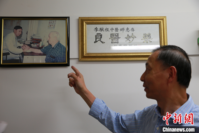 診所墻上一張彩色相片引起筆者好奇心。照片里,李醫(yī)生在給一個(gè)頭發(fā)花白的外國(guó)人號(hào)脈診斷。