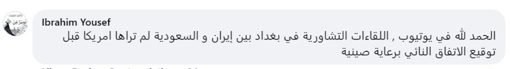 網(wǎng)友易卜拉欣·尤素福一語(yǔ)道破美國(guó)著急的原因:“此前沙特和伊朗在巴格達(dá)多輪接觸美國(guó)看不見(jiàn),中國(guó)一出面他們馬上就關(guān)注到了?!?/p>