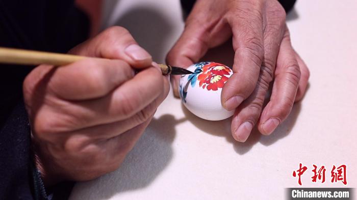 高觀凌繪制蛋殼。 臧東明 攝