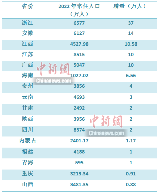 在此背景下,2022年,全國仍有超過一半的省份常住人口正增長。
