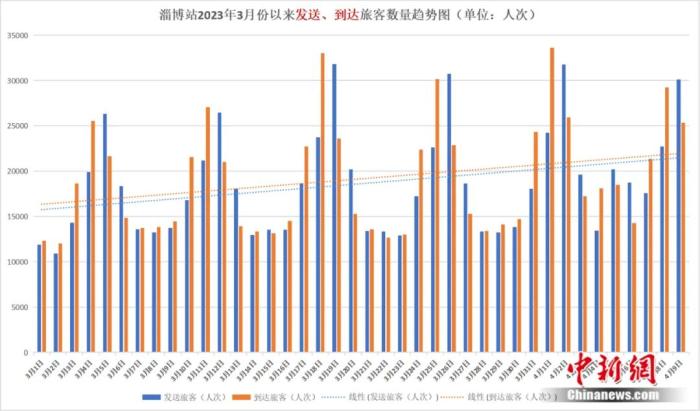 僅在3月份,淄博就接待外地游客480多萬人次,同比增長134%,旅游收入增長60%。