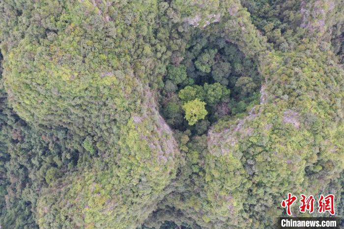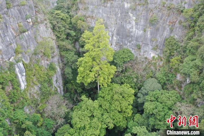 巨樹生長在峰叢洼地當中?!V西林業(yè)局供圖