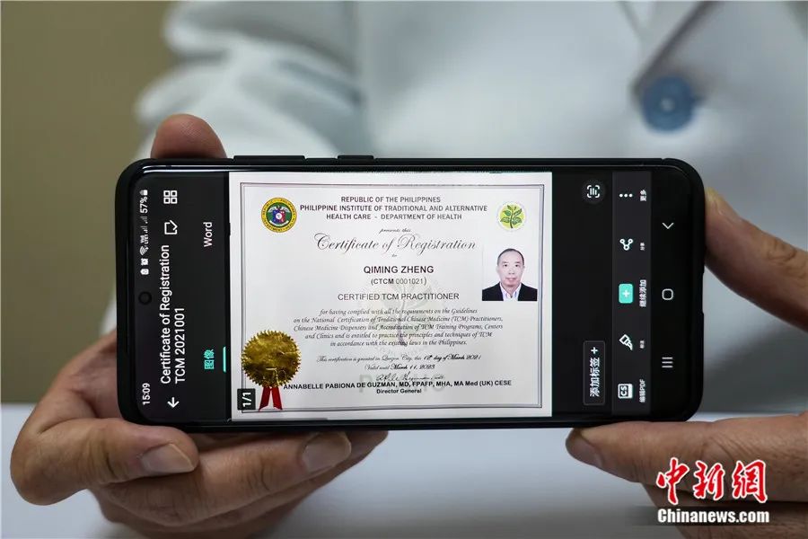 鄭啟明:2021年6月,菲律賓衛(wèi)生部授予我該國首張中醫(yī)執(zhí)業(yè)資格注冊證書,這標(biāo)志著中醫(yī)在菲律賓獲得合法執(zhí)業(yè)資格,意味著中醫(yī)在菲未來的發(fā)展迎來新的契機。