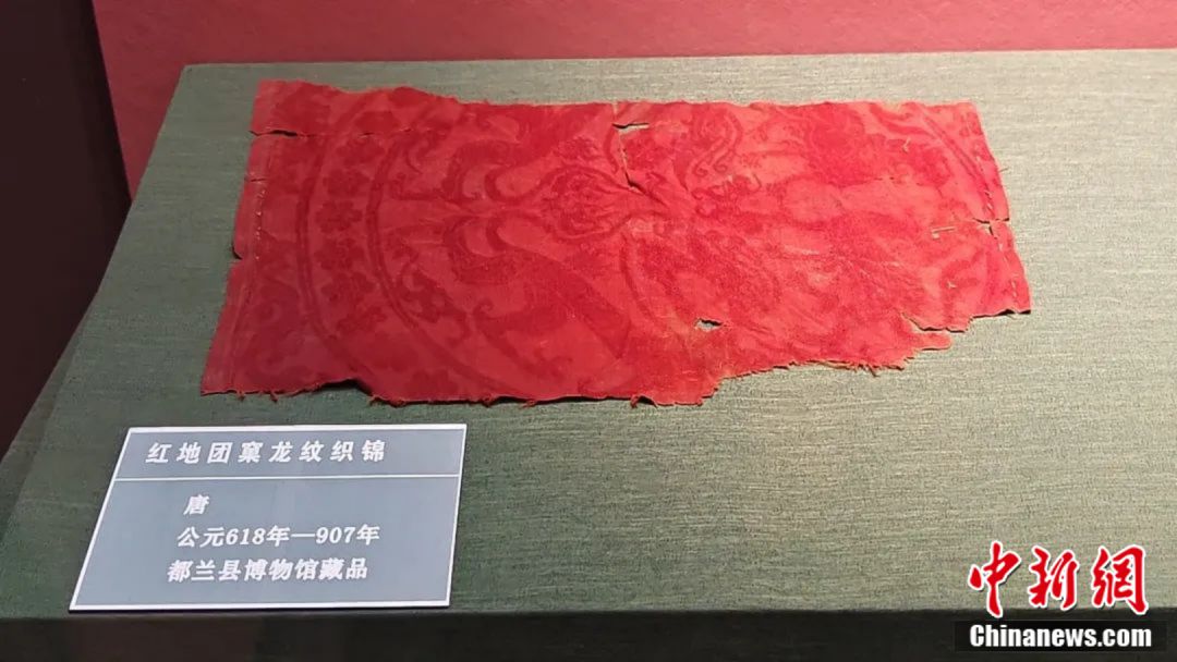 現(xiàn)如今三層只保留了一層,但考古人員在墓中發(fā)現(xiàn)的一件文字錦殘片,經(jīng)德國哥廷根大學(xué)古文字學(xué)家確認,為波斯薩珊朝的婆羅缽文字,系目前世界上唯一確證的八世紀波斯文字錦。