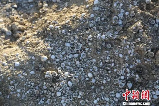 貝殼同含有鹽堿的泥沙凝結(jié)在一起,層層疊疊,千姿百態(tài),是迄今為止中國內(nèi)陸盆地發(fā)現(xiàn)的最大規(guī)模的古生物地層。
